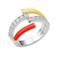 Pierścionek pozłacany z białą emalia i cyrkonią