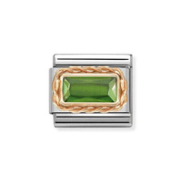 Element link do bransoletek Nomination Composable Stal + Różowe Złoto 9k bagietka zielona
