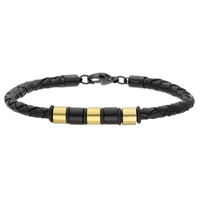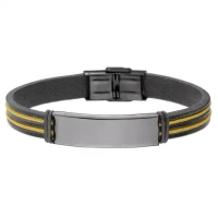 Bransoletka męska srebrna blacha na czarnej plecionej skórze pod grawer