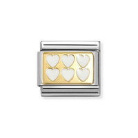 Element link do bransoletek Nomination Composable Stal + złoto 18K Białe serca