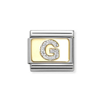 Element link do bransoletek Nomination Composable Stal + Złoto 18k litera G z brokatem