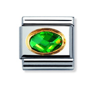 Element link do bransoletek Nomination Composable Stal + Złoto 18k owal zielona cyrkonia