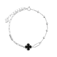 Złota bransoletka na dwóch łańcuszkach z diamentowanymi kulkami