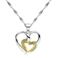 Srebrna i pozłacana zawieszka serca z cyrkoniami