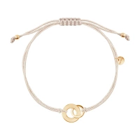 Bransoletka pozłacana z dwoma kółkami na beżowym sznurku