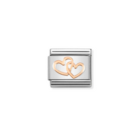 Element link do bransoletek Nomination Composable Stal + Różowe Złoto 9k serca połączone