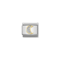 Element link do bransoletek Nomination Composable Stal + Złoto 18k księżyc z brokatem
