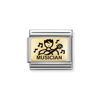Element link do bransoletek Nomination Composable Stal + Złoto 18K Musican czarna emalia