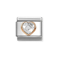 Element link do bransoletek Nomination Composable Stal + Różowe Złoto serce z cyrkonią
