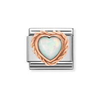 Element link do bransoletek Nomination Composable Stal + Różowe Złoto 9k serce cyrkonie