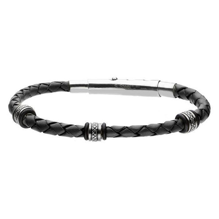 Bransoletka męska stal szlachetna skóra