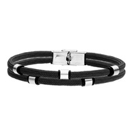 Bransoletka męska stal szlachetna sznurek bawełnia