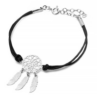 Bransoletka srebro pozłacane blaszka sznurek niebi