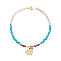Bransoletka pozłacana serce z kwarcami i rubinami