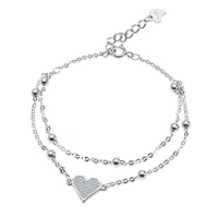 Bransoletka srebro rodowane serce kuleczki