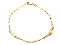 Bransoletka pozłacana z dwoma kółkami na beżowym sznurku