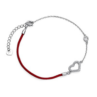 Srebrna bransoletka sznurek serce z cyrkoniami