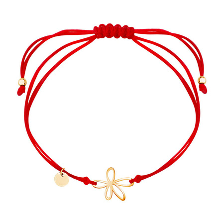Bransoletka sznurkowa srebrna pozłacane serduszko