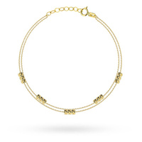 Złota bransoletka na dwóch łańcuszkach z diamentowanymi kulkami