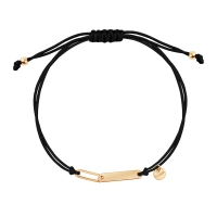 Bransoletka pozłacana blaszka na czarnym sznurku