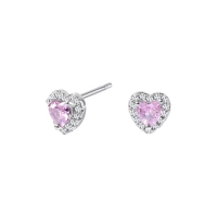 Kolczyki srebrne serca z różowymi cyrkoniami