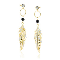 Kolczyki srebrne pozłacane pióra ze spinelem