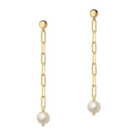 Kolczyki srebrne pozłacane łańcuch z perłą