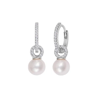 Kolczyki srebrne wiszące z perłami na kółkach z cyrkoniami