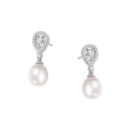 Kolczyki srebrne z perłą i cyrkoniami