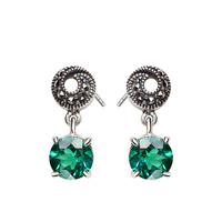 Kolczyki srebrne z zielonymi cyrkoniami i markazytami