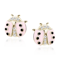 Kolczyki pozłacane emaliowane biedronki z cyrkoniami