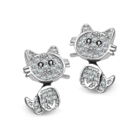 Kolczyki wiszące kotki srebrne z cyrkoniami