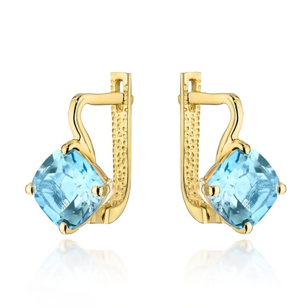 Kolczyki złote z kwadratowym niebieskim topazem