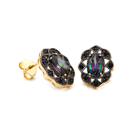 Złote kolczyki koła grube z czarnymi cyrkoniami