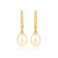 Złote kolczyki wiszące z perłami i cyrkoniami