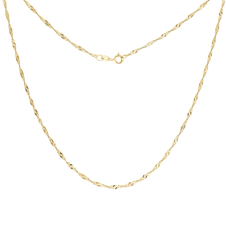 Większość kobiet uwielbia złotą biżuterię. Podkreśla ona urodę i doskonale nadaje się jako uzupełnienie eleganckich stylizacji. Złoto dobrze współgra z każdym typem urody i pasuje każdej pani niezależnie od wieku. Zdecyduj się na złoty łańcuszek singapur, a na pewno wykorzystasz go jako ozdobę wielu outfitów. Splot ten świetnie komponuje się z zawieszkami. Możesz ozdobić go również swoim ulubionym medalikiem lub wybrać dla siebie nową zawieszkę spośród propozycji dostępnych w naszym sklepie. Oferujemy złote łańcuszki singapur wykonane ze złota próby 585. Są trwałe i odporne na uszkodzenia mechaniczne. Złoto 585 cechuje się bardzo dobrymi właściwościami fizycznymi. Postaw na luksusową i wytrzymałą biżuterię.