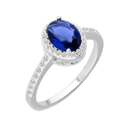 Srebrny pierścionek z owalną szafirową cyrkonią