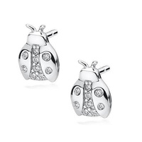 Srebrne kolczyki sztyfty biedronki z cyrkoniami