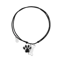 Bransoletka srebrna łapka psa kość na czarnym sznurku