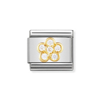 Element link do bransoletek Nomination Composable Stal + Złoto 18k kwiatek z cyrkoniami