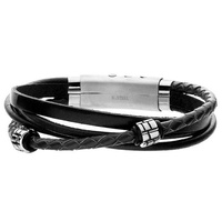 Bransoletka męska stal szlachetna skóra sznurek