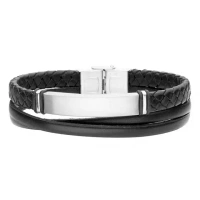 Bransoletka męska stal szlachetna skóra