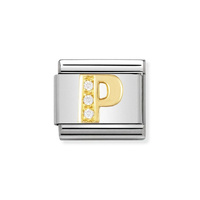 Element link do bransoletek Nomination Composable Stal + Złoto 18k litera P cyrkonie