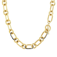 Naszyjnik stalowy pozłacany z granatową emalią