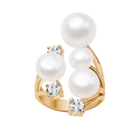Pierścionek srebro pozłacane perły naturalne z cyrkoniami