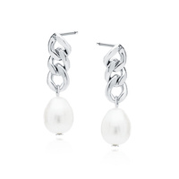 Kolczyki srebrne pozłacane łańcuch z perłą