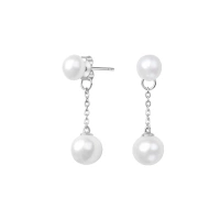 Kolczyki wiszące srebrne łańcuszki z perłami owalnymi