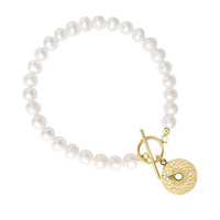 Bransoletka z pereł z zawieszką rozetą srebro pozł