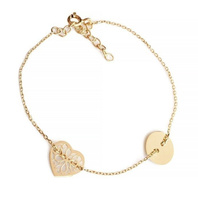 Bransoletka serbrna pozłacane kółko ażurowe serce