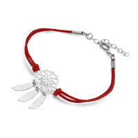 Bransoletka srebrny łapacz snów na czerwonym sznurku